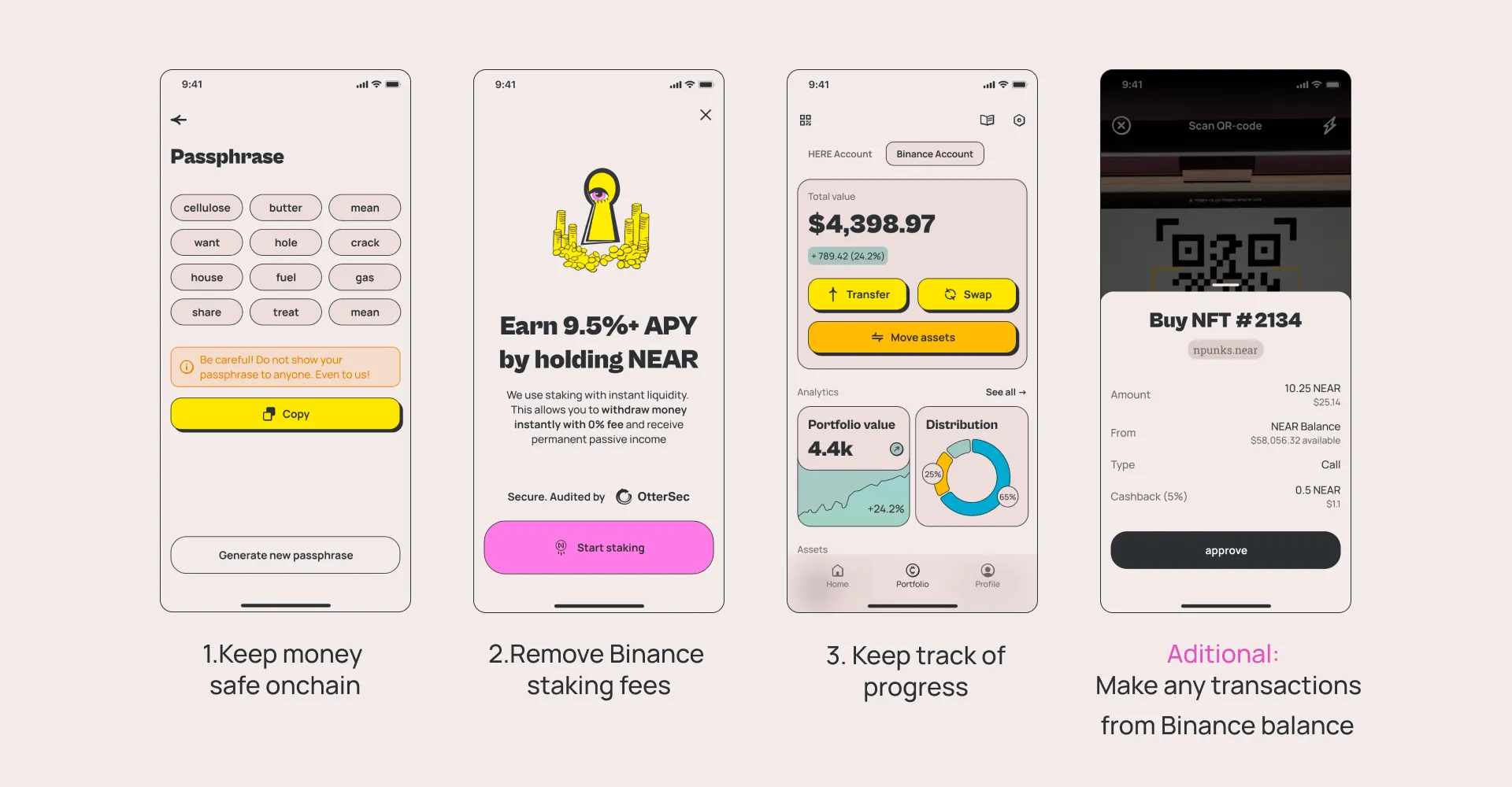 3. 💸 Write `#done username.near` in [discord](https://discord.gg/JMVbdBjb) in the #binance channel and get **4** **USDT**!